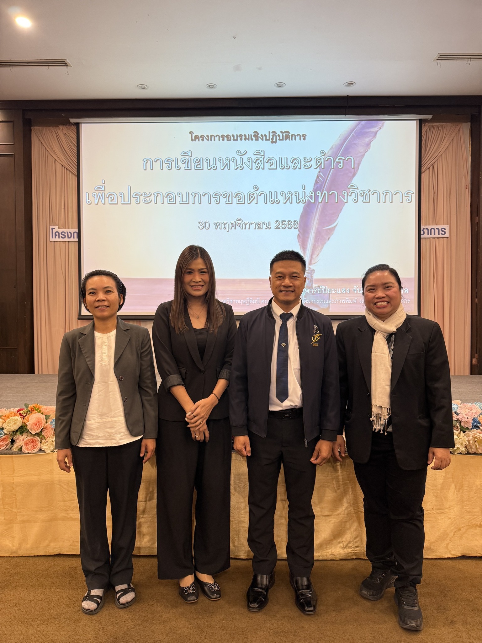 เมื่อวันที่ 30 พฤศจิกายน 2568 รองศาสตราจารย์ ว่าที่ร้อยตรี ดร.นิโรจน์ สินณรงค์ ผู้ช่วยศาสตราจารย์ ดร.พิมพ์ชนก สังข์แก้ว รองศาสตราจารย์ ดร.รภัสสรณ์ คงธนจารุอนันต์ และอาจารย์วาสนา สุขกุล เข้าร่วมโครงการอบรมเชิงปฏิบัติการ : การเขียนหนังสือและตำราเพื่อประกอบการขอตำแหน่งทางวิชาการ ณ โรงแรมเชียงใหม่แกรนด์วิว