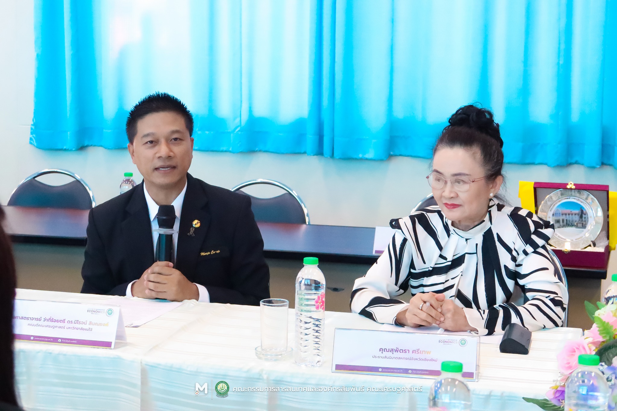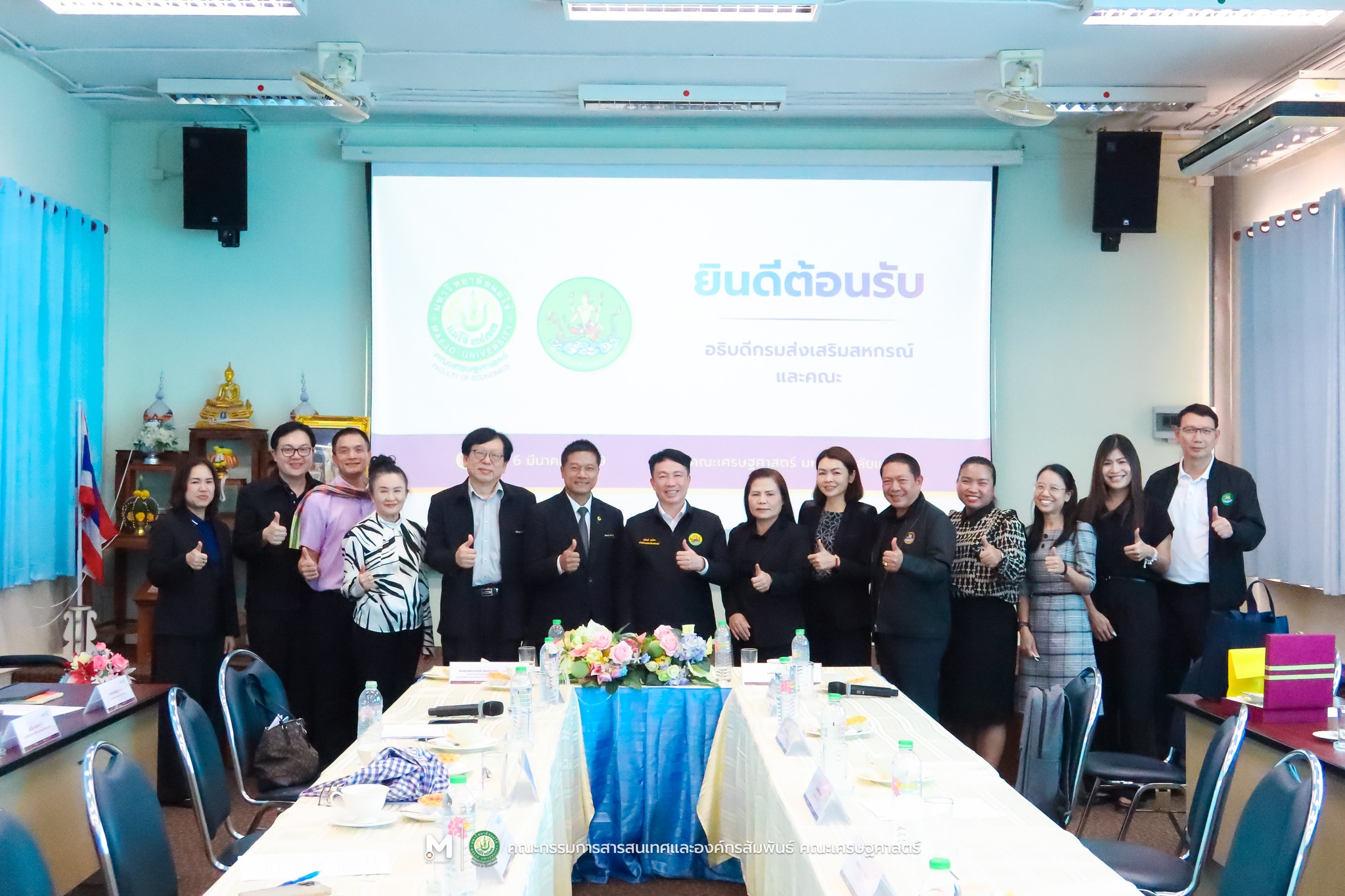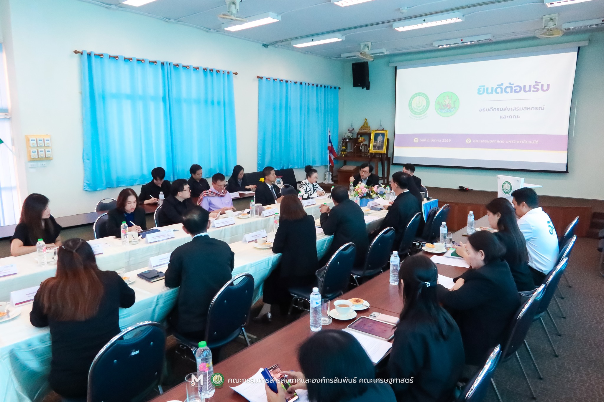 คณบดีคณะเศรษฐศาสตร์ ผู้บริหาร คณาจารย์ และบุคลากร ร่วมประชุมหารือแนวทางความร่วมมือในการบริการวิชาการกับกรมส่งเสริมสหกรณ์ โดยมี นายนิรันดร์ มูลธิดา อธิบดีกรมส่งเสริมสหกรณ์ ศิษย์เก่าระดับปริญญาโทสาขาวิชาเศรษฐศาสตร์สหกรณ์ มหาวิทยาลัยแม่โจ้ พร้อมด้วย รองศาสตราจารย์ ดร.ประเสริฐ จรรยาสุภาพ นายกสมาคมเศรษฐศาสตร์สหกรณ์แห่งประเทศไทย