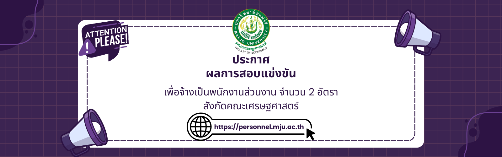 - ประกาศผลการสอบแข่งขันเพื่อจ้างเป็นพนักงานส่วนงาน จำนวน 2 อัตรา สังกัดคณะเศรษฐศาสตร์
